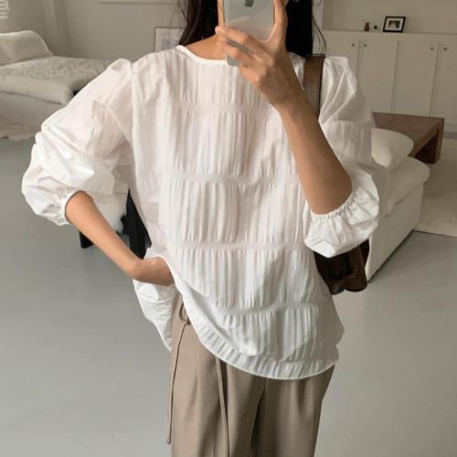 루스리더 여성 심플 퍼프 벌룬소매 셔츠 E880