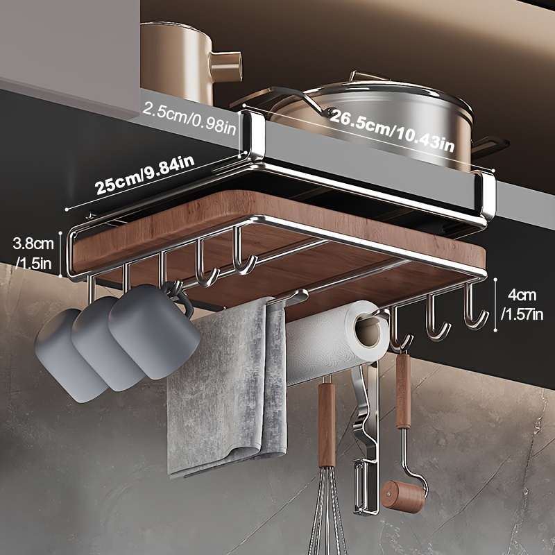 TEMU 스테인리스 스틸 주방 정리대 - 매달아 보관 가능한 도마, 컵, 랩, 냄비 뚜껑 정리대 - 광택 표면, 캐비닛 및 싱크대 아래 정리에 적합
