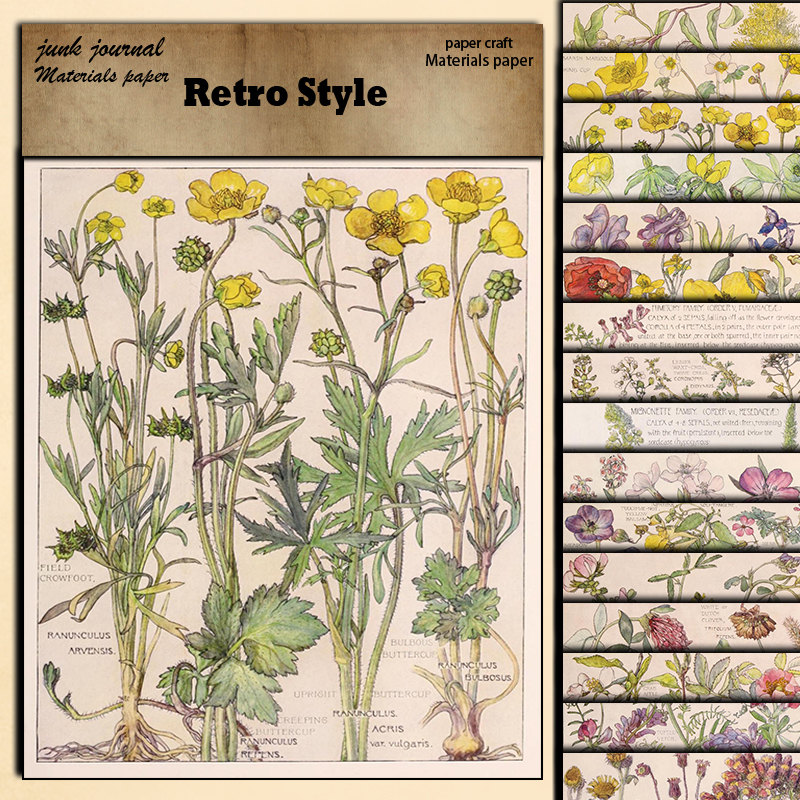 TEMU 영국 야생화가 특징인 대형 종이 20매. 프로젝트, 레트로 곤충 대계 저널, 여성, 성인, 학생, 교사 및 미술 및 공예에 종사하는 직원들을 위한 선물로 적합합니다.