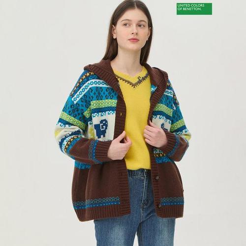 [베네통]양 자카드 후드 니트 가디건 BAKC54461