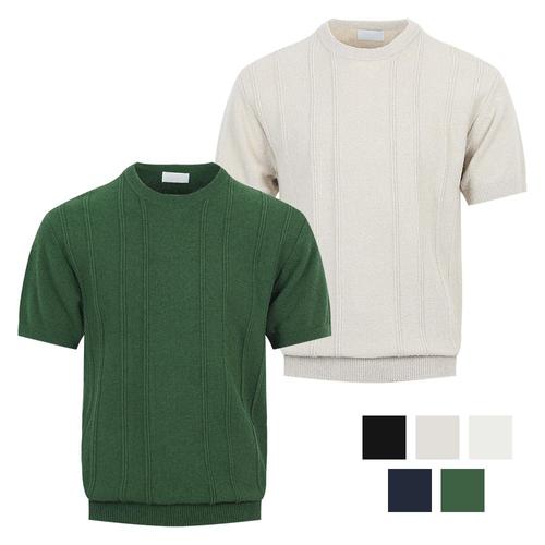 남자 베니스 부클 라운드 반팔 니트티 AT-KNH-Q035-아이