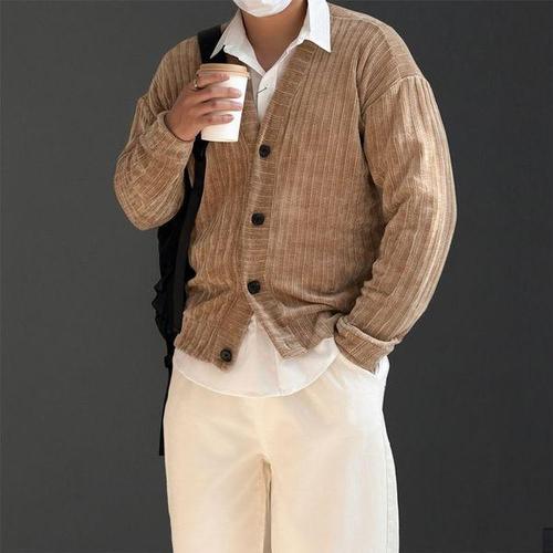 [에이치플러스몰]베니스 니트 크롭 벨벳 가디건 (5color) 오버핏 브이넥 숏 커플 봄 가을 겨울