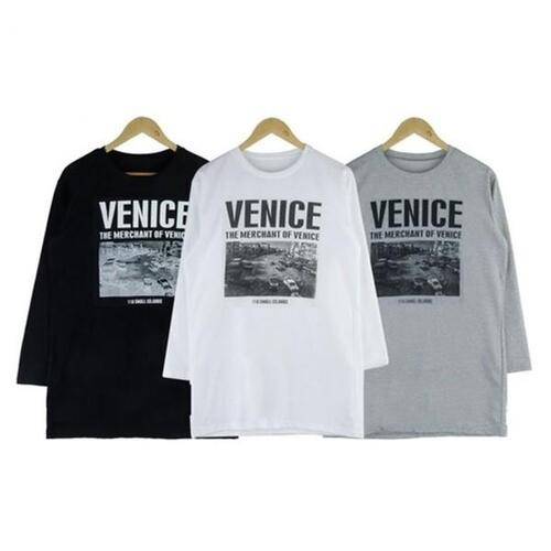 [끌레아]여성간절기티셔츠 베니스 라운드넥 여자 긴팔 티셔츠 캐주얼 프린팅