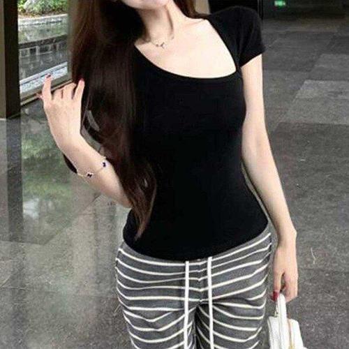 [모노무드]LMO 여성용 플레인 S/S 가을철 스웨트 넉넉한핏 박시 티탑캐주얼