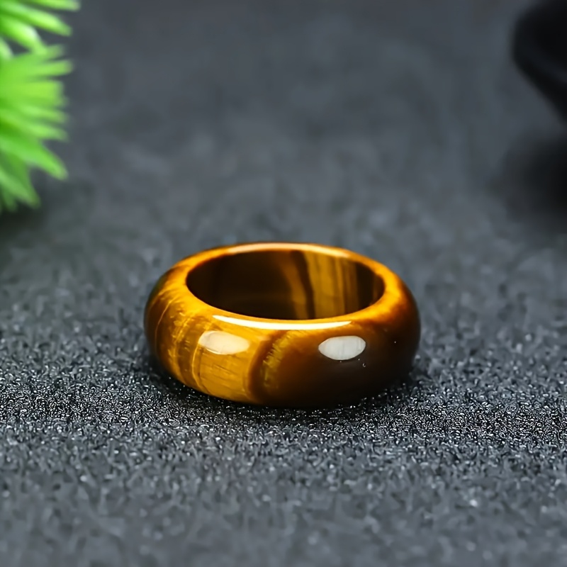 TEMU 패셔너블한 천연 타이거 아이 스톤 반지, , 커플링, 선물로 적합.