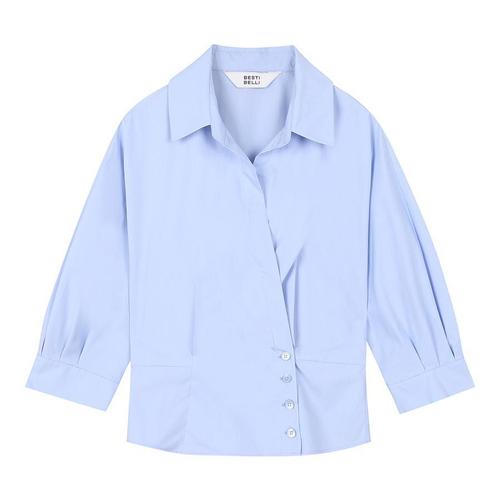 [베스띠벨리][베스띠벨리] 베스띠벨리 오버핏 언발 크롭셔츠 블라우스BKBAE24130 (P003657243)
