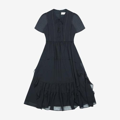 [베스띠벨리]25S/S 쉬폰 배색 스트링 원피스 BKOAE2533