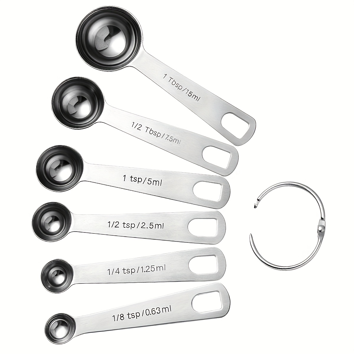 TEMU 6개 스테인리스 스틸 계량 스푼 세트, 건식 및 습식 성분 스쿱, 측정 및 인치, 액체, 단체 및 분말용 쌓을 수 있는 주방 도구, 휴대용 후크 포함 - 베이킹 액세서리, 요리 필수품, 주방 액세서리, 베이킹 도구 및 장비, 주방용품, 베이킹용 계량 스푼과 스푼 세트, 주방용품, 베이킹용 계량 스푼, 다각형 계량 스푼