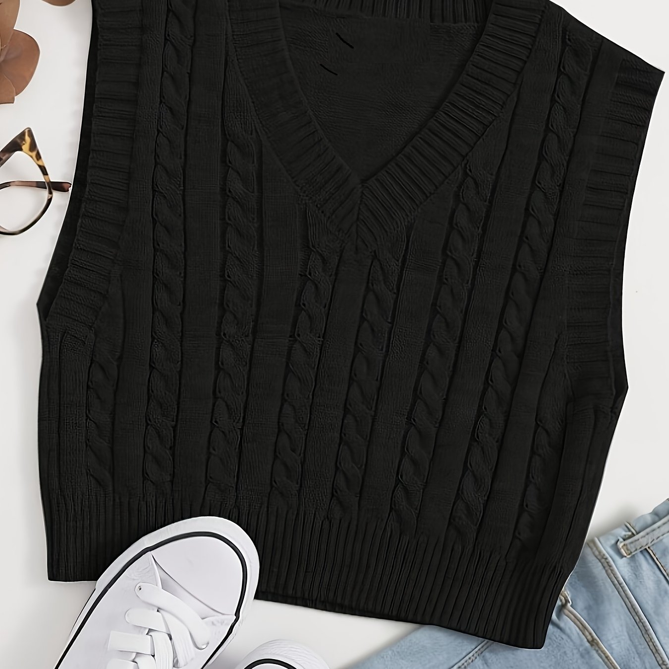 TEMU 여성용 브이넥 민소매 풀오버 스웨터 조끼
