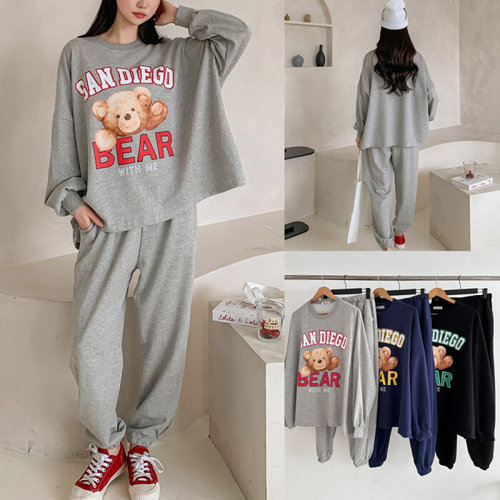 [QNTV0X19_55]베어 맨투맨 상하세트 팬츠 트레이닝세트