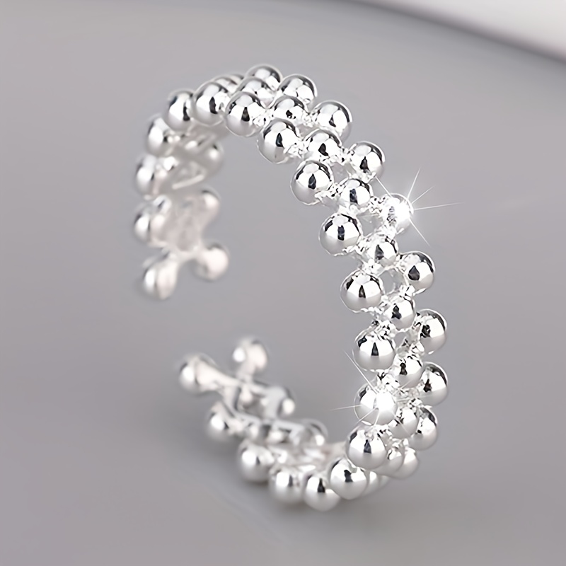 TEMU 여성용 인터로킹 서클 링 - 비즈가 있는 오픈 조절 가능한 밴드, 어머니날, 웨딩 파티, 부활절 선물용 주얼리, 우아한 레이어링 디자인, 결혼식 액세서리, 특별한 날을 위한 반짝이는 장식품 (선물 상자 포장)