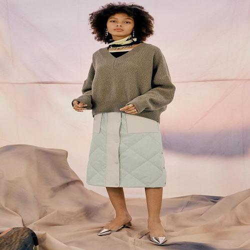 바쉬 베이지 짜임패턴 울캐시미어혼방 니트스커트 SISK2F013I2