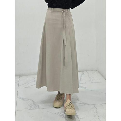 [샵앤]여성 리본타이 언발 옆핀턱 뒷밴딩 A라인 롱스커트 SIU-WSK-4814-베이지
