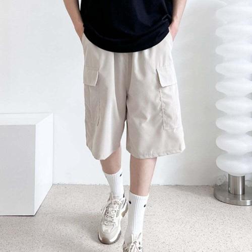 [셀럽하우스]남자 BGJI8536 카고반바지-라이트베이지 허리밴딩 주머니