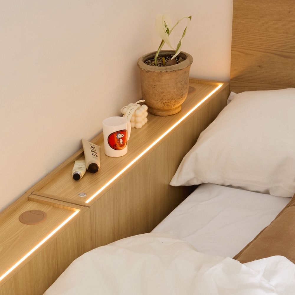 쿠폰가 199,000원 국내생산 로다 일자형 LED조명헤드 통수납침대 SS/Q (콘센트)