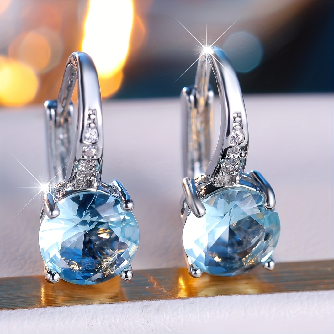 TEMU 클래식 다용도 7mm 라운드 컷 아쿠아마린 후크 귀걸이 펜던트 댕글 귀걸이 연회 파티 귀걸이 1쌍
