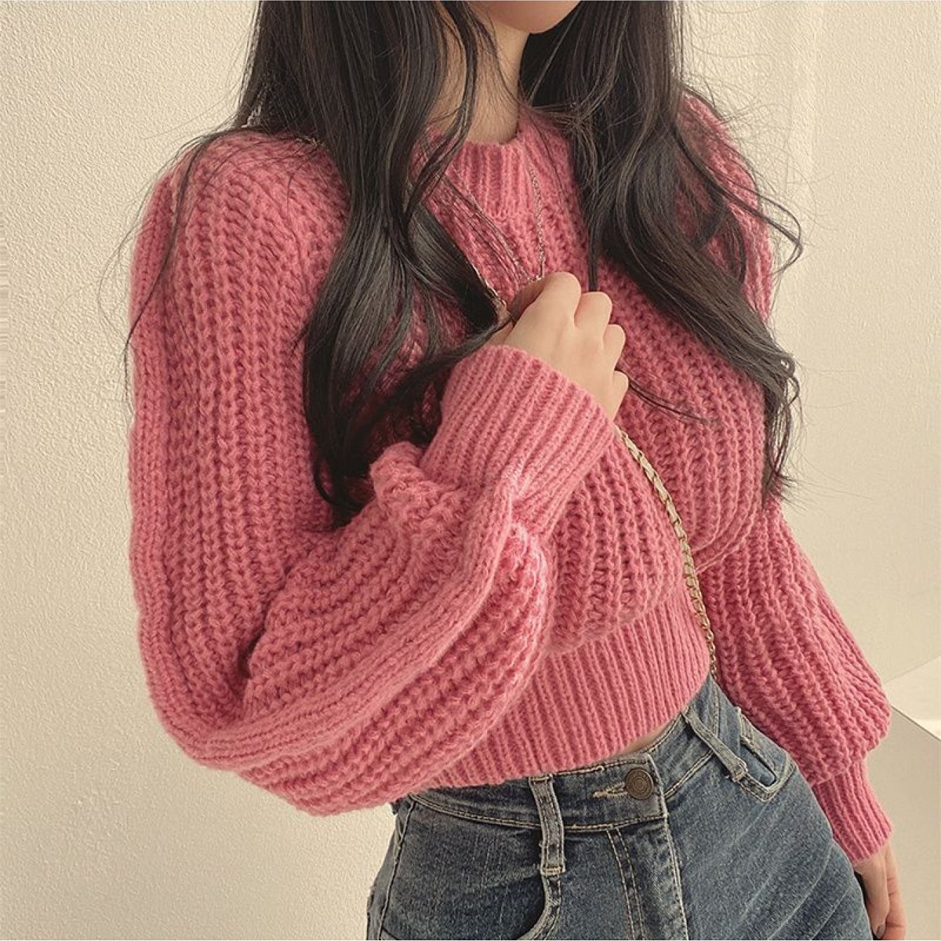 정상가:59,000원 ㅣ 데일리 무지 라운드 오버핏 긴팔 니트 (DP4KT012A)