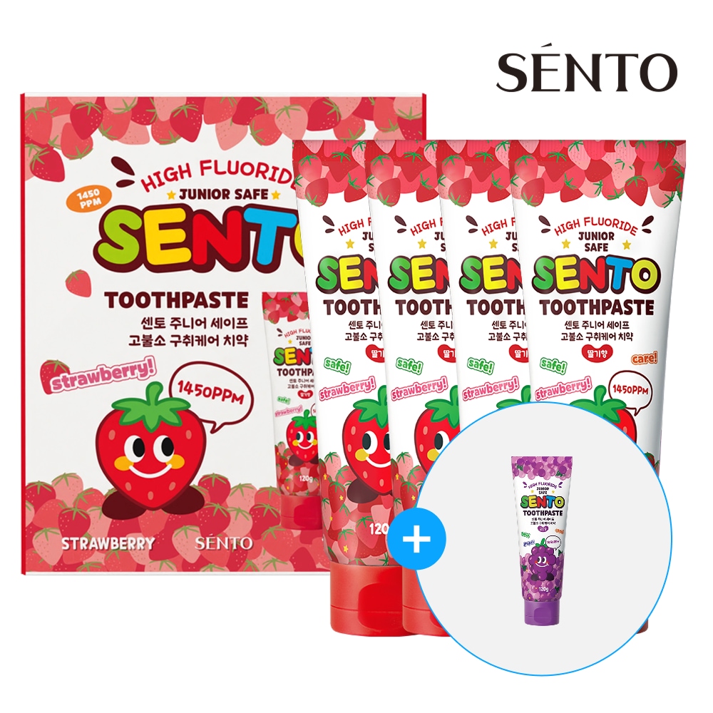 주니어 세이프 고불소 구취케어 치약 딸기향 120g 4개 +포도향1개