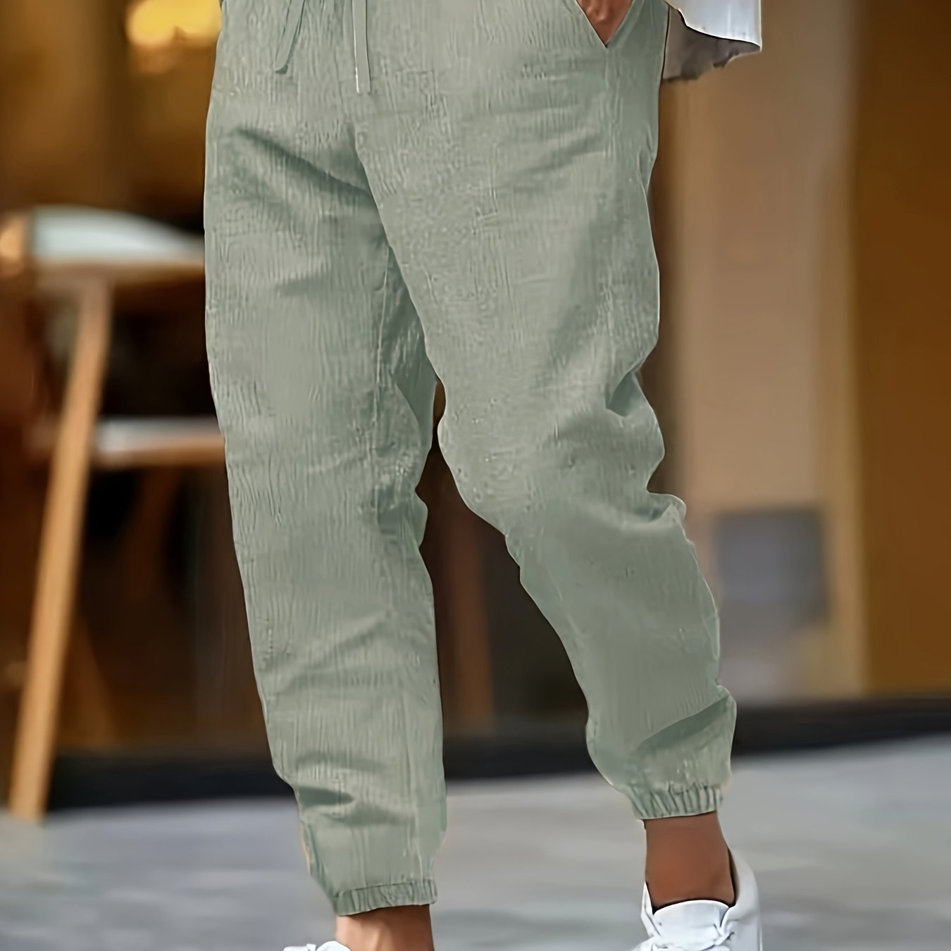 TEMU 남성용 가벼운 리넨 조거 팬츠 - 통기성 좋은 루즈핏, 비치웨어 및 캐주얼 착용을 위한 드로스트링 허리, 아웃도어 & 레저복