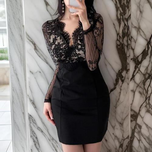 [옷자락]여자 글램룩 레이스 블랙 시스루 미니원피스