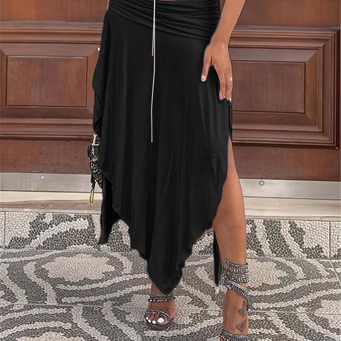 TEMU 빈티지 솔리드 폴드 스트릿웨어 시크 롱 스커트 Y2K 한국 패션 페어리코어 하라주쿠 우아한 에스테틱 스커트