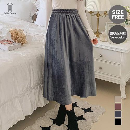 [밸리걸] 벨벳 밴딩 롱 스커트 803012