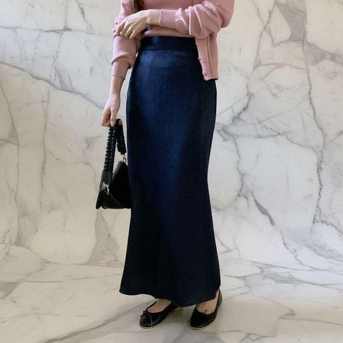 여자 벨벳치마 뒤트임 일자 데님 롱스커트_3