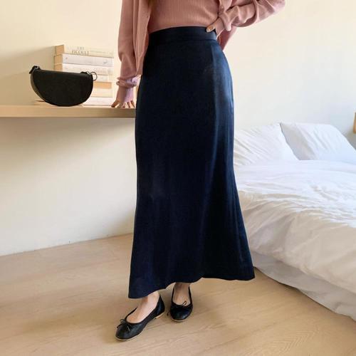 [신상오픈런]여성용 부드러운 벨벳 슬림 롱 스커트