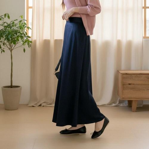 율랑팡 여자 스커트 롱 슬림핏 A라인 플리츠 중기장 벨벳 HO1
