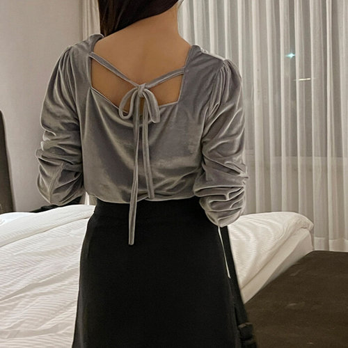 에이치다 / 데이트룩 세리 뒷리본 스퀘어 벨벳 블라우스