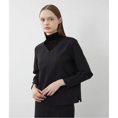 페이퍼먼츠 반하이넥 벨벳 셔링 긴팔 블라우스 02950