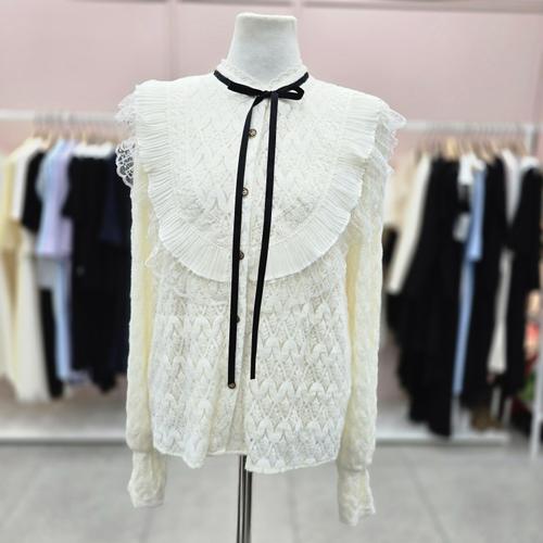 [샤틴]벨벳리본넥 레이스배색 패턴 블라우스S254K251A03
