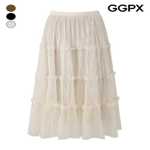 [GGPX]벨벳 배색 캉캉 쉬폰 스커트 (GP9SK036F)