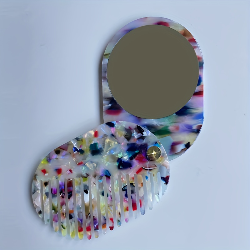TEMU 접이식 아세테이트 빗-거울 이중용도 메이크업 거울 | 텍스처 마감 | 휴대용 여행용 터치업 거울 | 포켓 사이즈 컴팩트 거울 | 여성을 위한 우아한 선물 | 커버 거울이 있는 방전 방지 빗