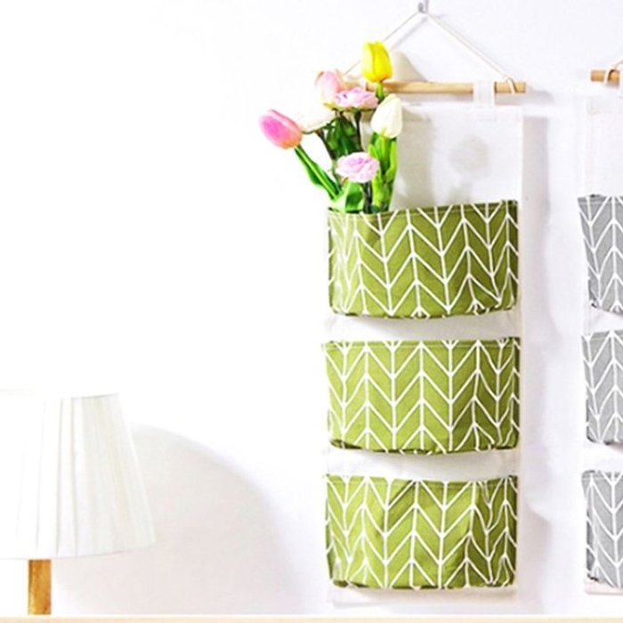 엄지척 3단벽걸이수납함 패브릭 수납포켓 그린