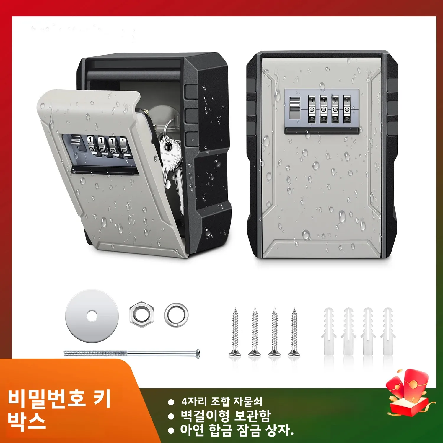 희락 키 보관함 4자리 비밀번호 ABS 금속 다이얼 보관 관리 도난 방지 벽걸이형 대용량 금고