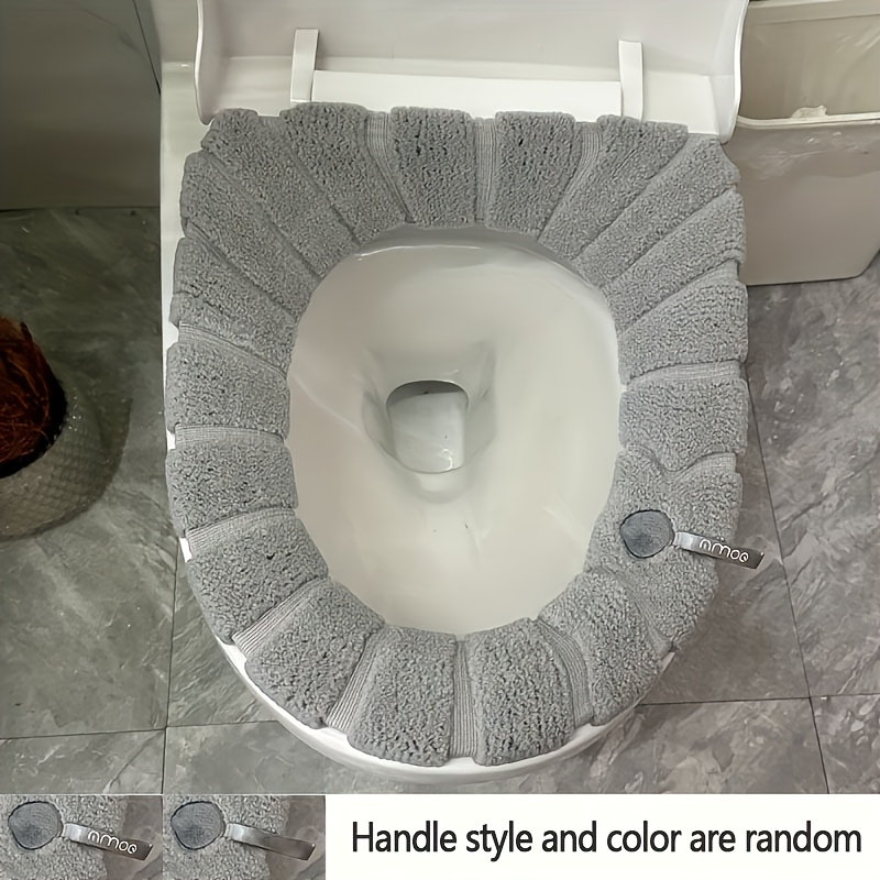 TEMU 1pc 두꺼운 세탁 가능한 화장실 좌석 커버, 손잡이 포함 - 부드러운 폴리에스터 섬유, 재사용 가능하고 보온, 모든 계절에 쉽게 설치, 회색 리브 디자인, 내구성 있는 욕실 액세서리, 화장실 액세서리, 겨울 편안함, 쉽게 청소 가능한 소재|변기커버
