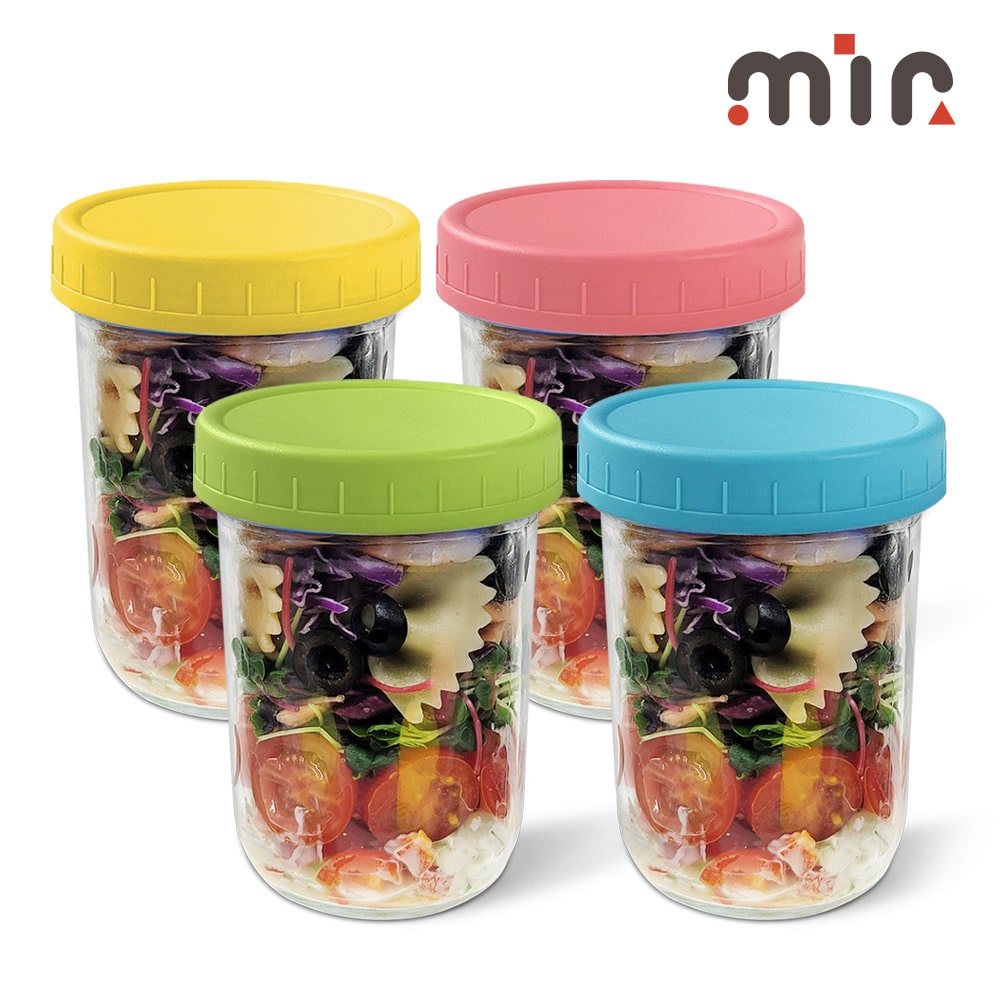 샐러드 밀프렙 젤리 390ml 유리병 4P세트 컬러캡 시리얼용기 투고보틀