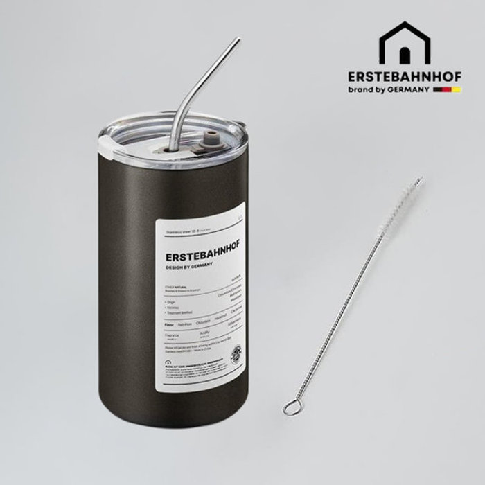 에스테반호프 스텐 빨대 텀블러 600ml 딥그레이 커피 캠핑 보온보냉 진공 입구넓은텀블러