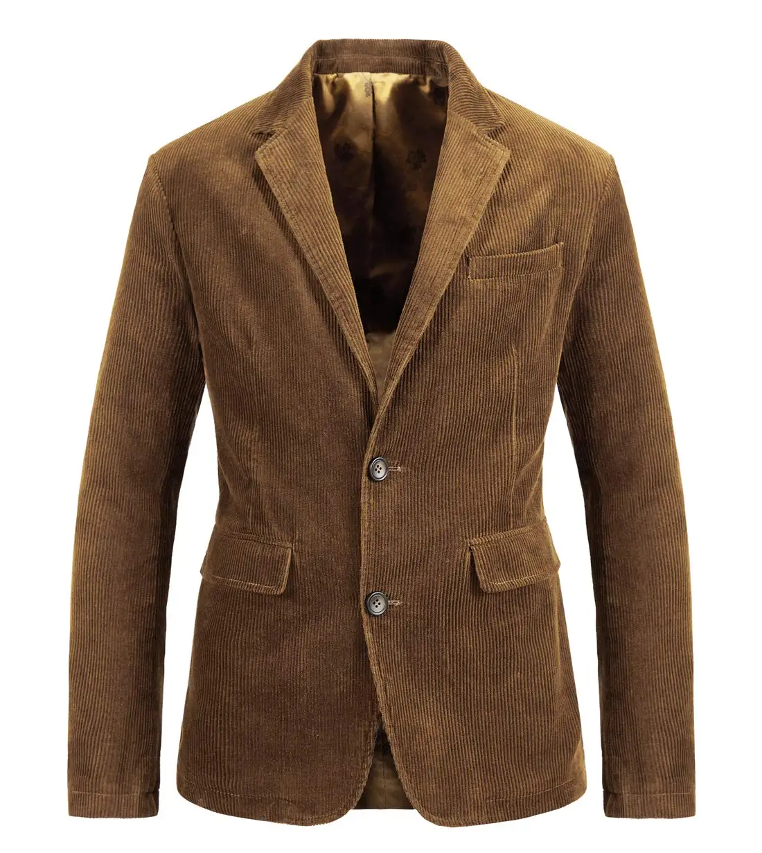 남성 빈티지 코듀로이 블레이저 재킷 캐주얼 워크웨어 스포츠 코트 클래식 핏 수트 블레이저