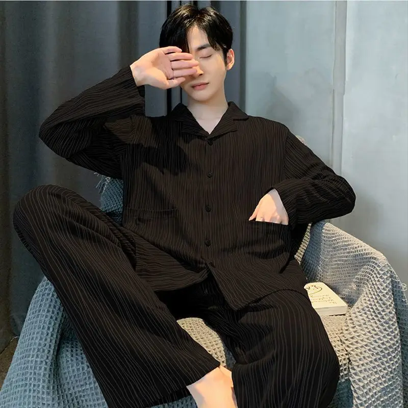 00% 순면 긴팔 잠옷 남성용 봄 가을 홈웨어 세트 외부에서 착용 가능 큰 사이즈 학생 홈웨어