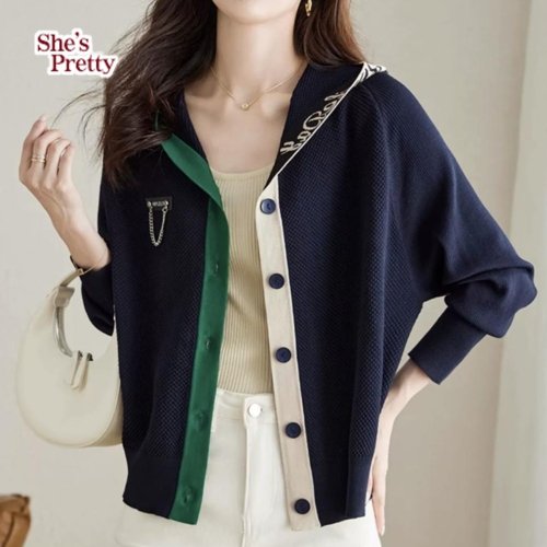 [쉬즈프리티] 앙크배색후드가디건 L까지_여성후드가디건