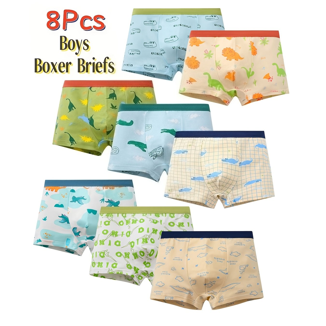 TEMU 8팩 소년용 박서 브리프, 캐릭터 프린트 키즈 노벨티 속옷, 부드럽고 통기성 좋은 어린이 속옷
