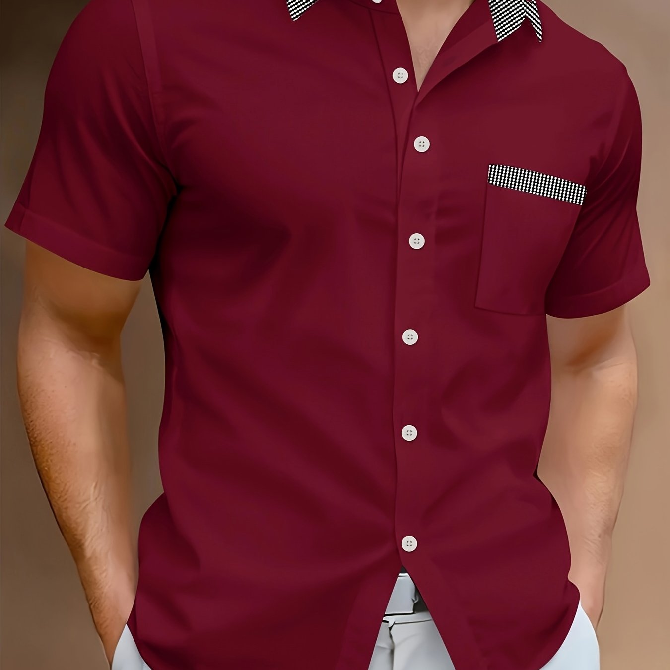 TEMU 남성용 슬림핏 경량 비즈니스 캐주얼 셔츠, 칼라와 반팔, 가슴 포켓 포함 - 베이지색 여름 착용용 그레이 악센트