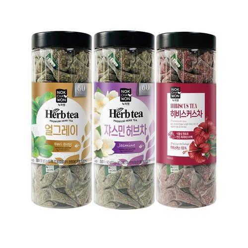 [녹차원] 대용량 허브차 60T 3종세트 (얼그레이+쟈스민+히비스커스)