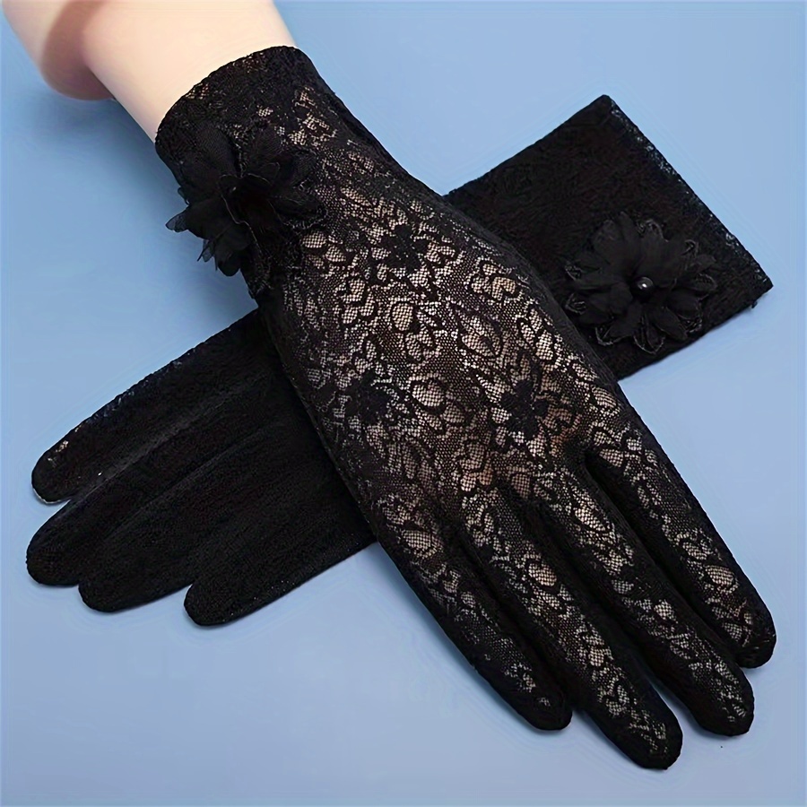 TEMU 여성용 여름 가벼운 레이스 핑거리스 장갑 - 터치스크린 호환, 탄력 있는 소프트 악센트, 통기성 아이슬리키 섬유 원단, 캐주얼 아웃도어 드라이빙 & 패션용, 레이스 장갑, 일상 착용 액세서리, 신축성 있는 핏