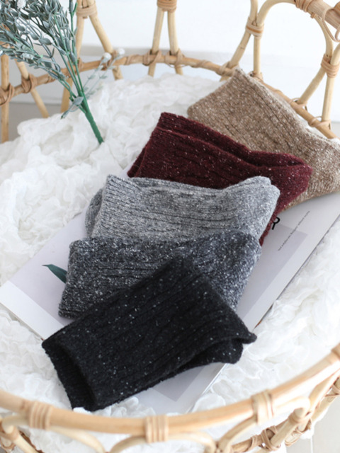 보카시 니트 중목 양말 남녀공용 - 보온 보카시 니트 기모 수면양말 겨울양말 3켤레