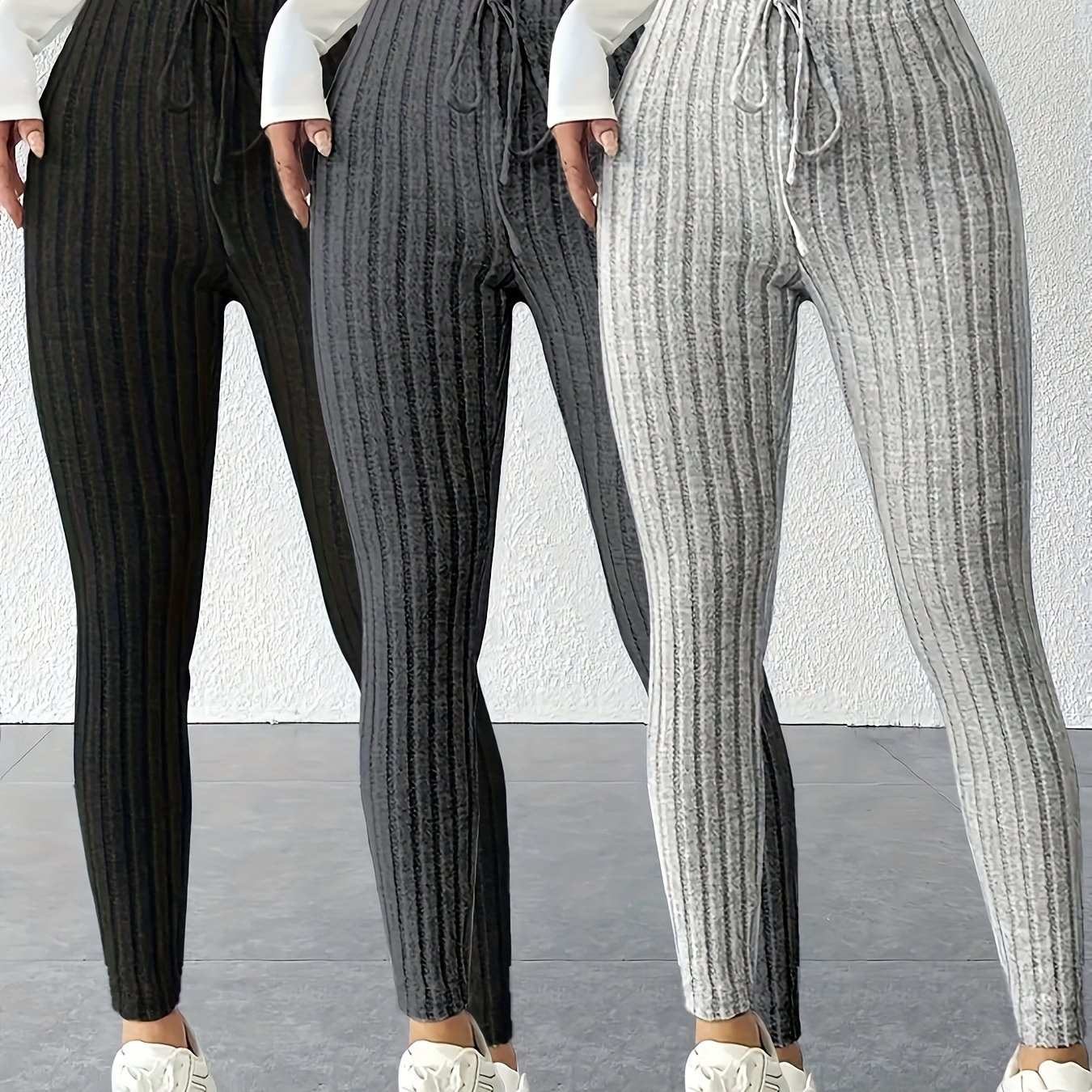 TEMU 여성용 하이웨이스트 팬츠 세트, 고신축성 캐주얼 솔리드 컬러 긴바지, 봄과 가을에 적합. 복부 컨트롤 및 핏, 데일리 레깅스, 편안한 여성용 아우터웨어 및 레이어링 레깅스, 멀티팩