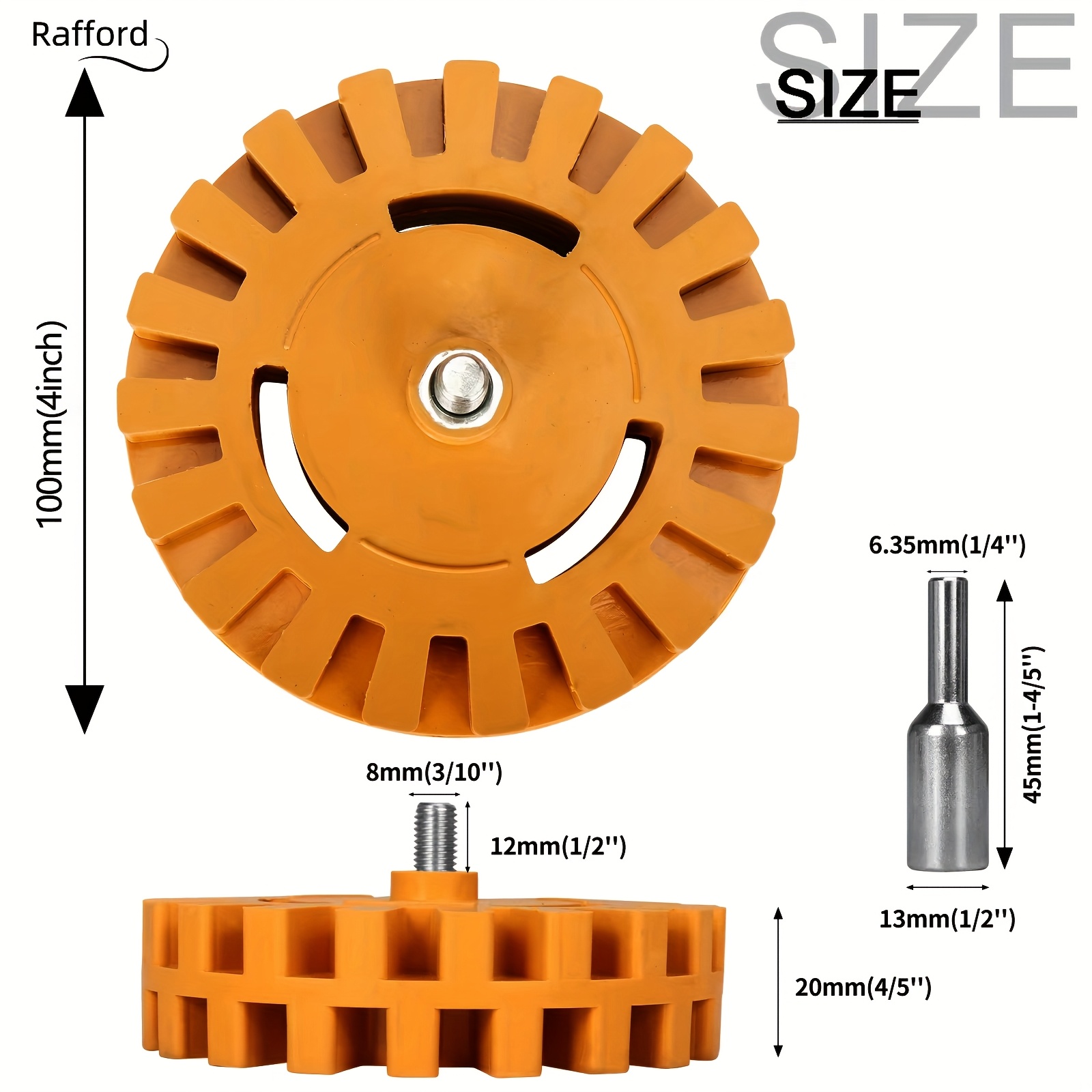TEMU Rafford 1개 3.5 및 4인치 자동차 고무 지우개 휠, 접착제 제거제, 고무 휠 기어, 부드러운 드릴 어댑터, 페인트 수리 고무 비닐 데칼 제거 도구, 드릴 회전 자동차 표면 스티커 제거 도구에 적합.