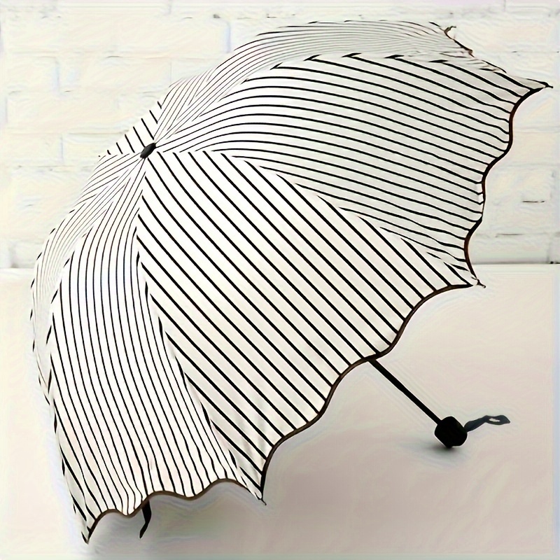 TEMU 원피스 우산, 모던 스타일 다기능 철제 샤프트 우산 - 화이트 레이스 트림, 직사각형 베이스 포함, 친구에게 주는 최고의 선물
